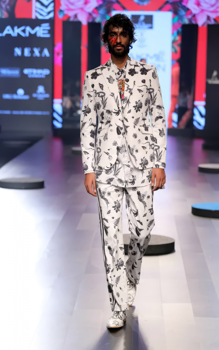 The three designers also presented a specially curated limited edition capsule collection inspired by Johnnie Walker’s iconic striding man. When it comes to the colourful fantasy of digital prints, Ajay Kumar is the master of the genre.