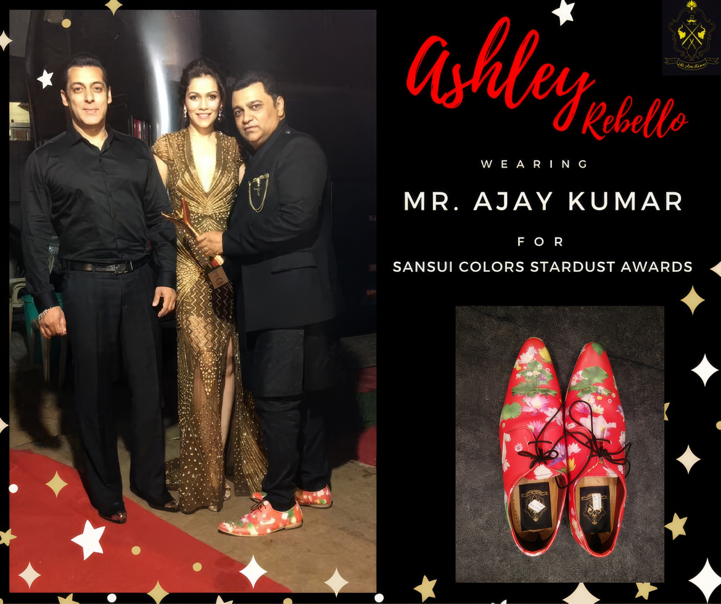 Ashley Rebello, Celebrity Stylist in Custom Printed Shoes by Mr Ajay Kumar | Sansui Stardust Awards Styling