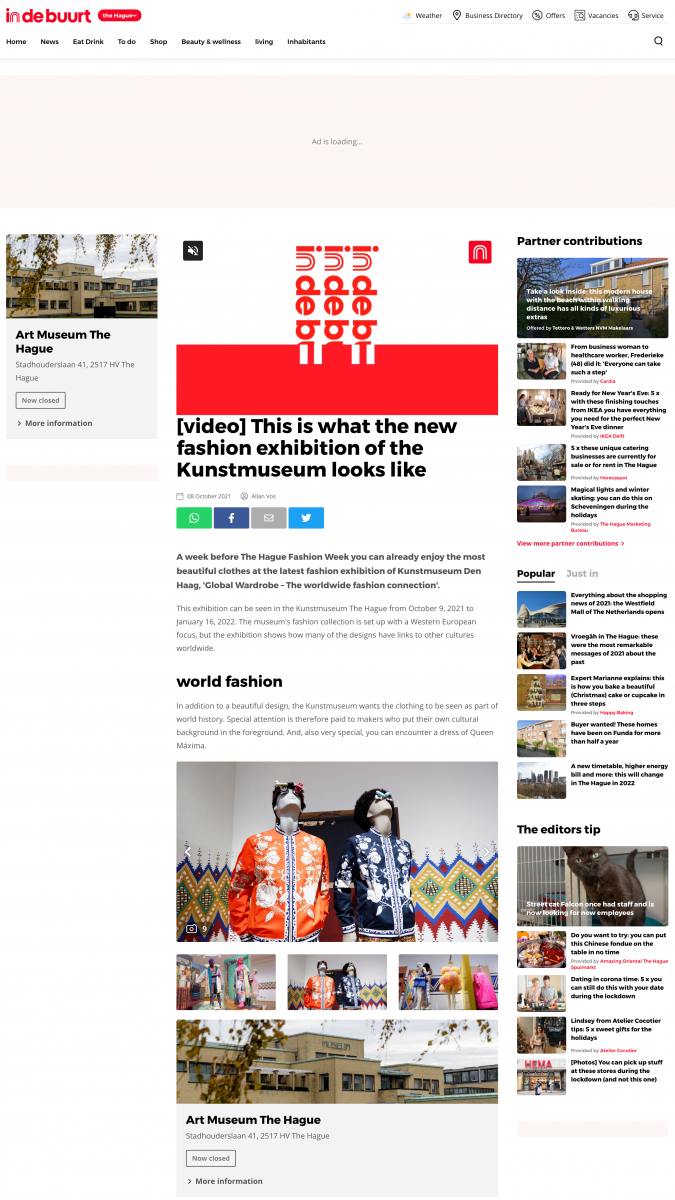 A week before The Hague Fashion Week you can already enjoy the most beautiful clothes at the latest fashion exhibition of Kunstmuseum Den Haag, 'Global Wardrobe - The worldwide fashion connection'. The exhibition can be seen in the Kunstmuseum The Hague from October 9, 2021 to January 16, 2022. The museum's fashion collection is set up with a Western European focus, but the exhibition shows how many of the designs have links to other cultures worldwide.