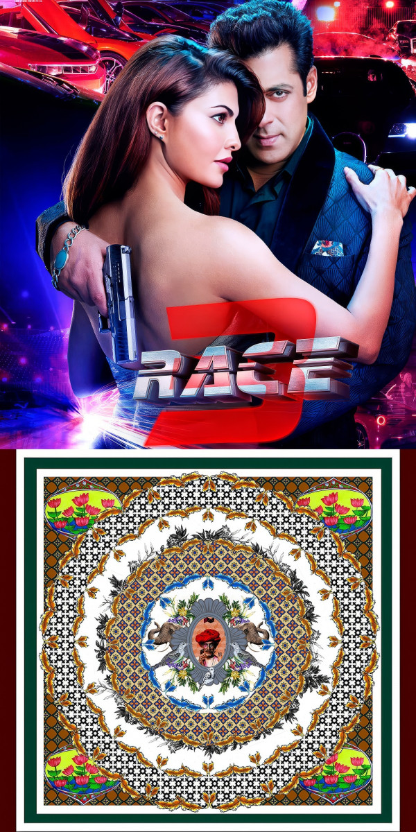 Superstar Of Bollywood - Salman Khan wearing Mr. Ajay Kumar's signature Kaleidoscope Pocketsquare for Race 3 movie