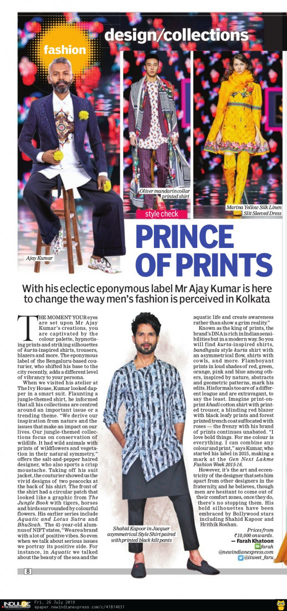 PRINCE OF PRINTS With his eclectic eponymous label Mr Ajay Kumar is here to change the way men’s fashion is perceived in Kolkata.