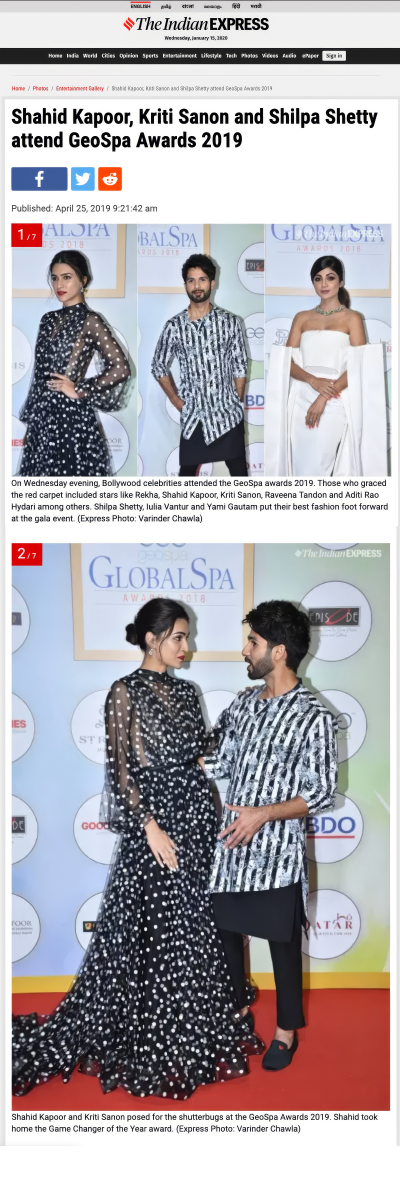 Shahid Kapoor, Kriti Sanon and Shilpa Shetty attend GeoSpa Awards 2019