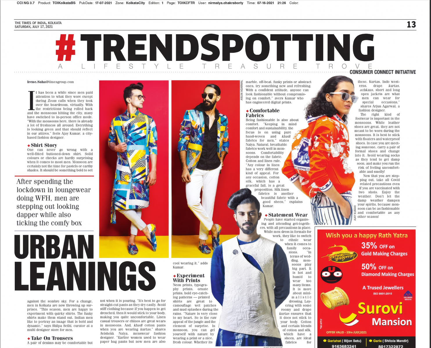 After spending the lockdown in loungewear doing WFH, men are stepping out looking dapper while also ticking the comfy box. For a change, men in Kolkata are now throwing up surprises. This season, men are happy to experiment with quirky shirts. The funky shirts make them stand out. Indian men like to portray an image that is bold and dynamic, says Shilpa Sethi, curator at a multi designer store for men.